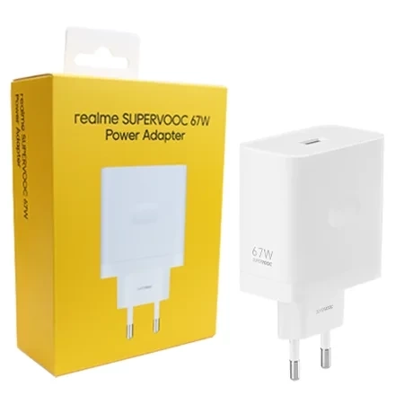 Carregador realme SUPERVOOC 67W branco com embalagem amarela