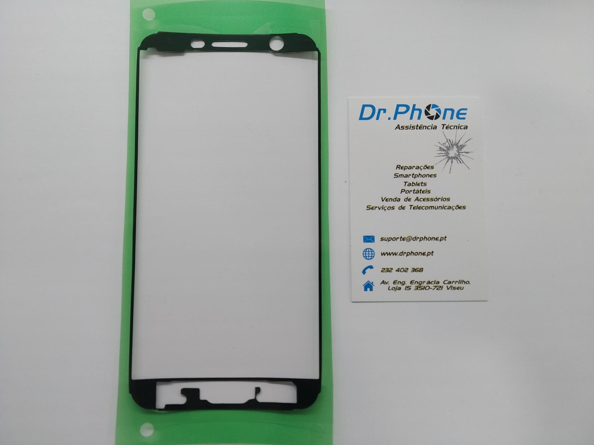Moldura preta para ecrã de smartphone e cartão de visita da Dr.Phone
