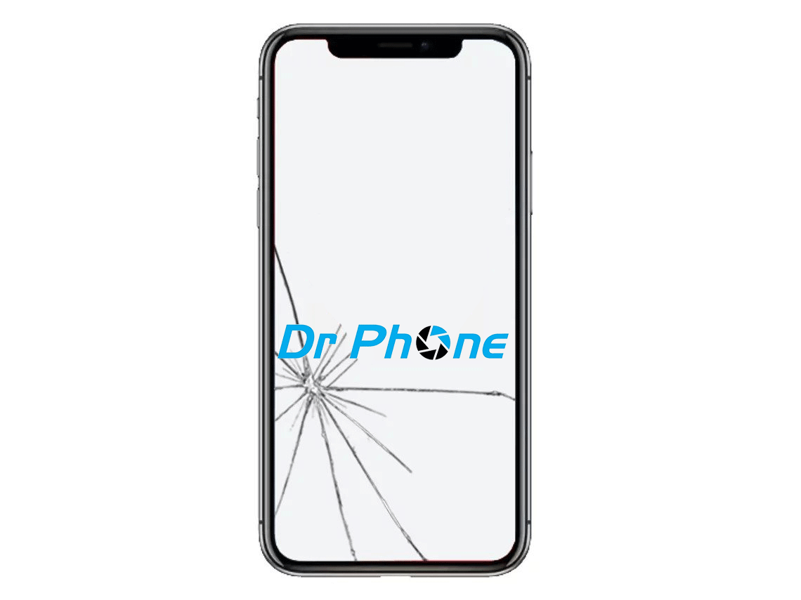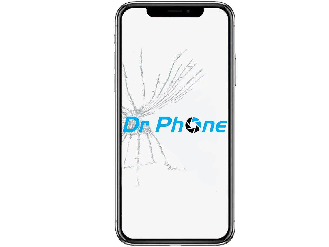 Smartphone com ecrã partido mostrando o texto Dr Phone