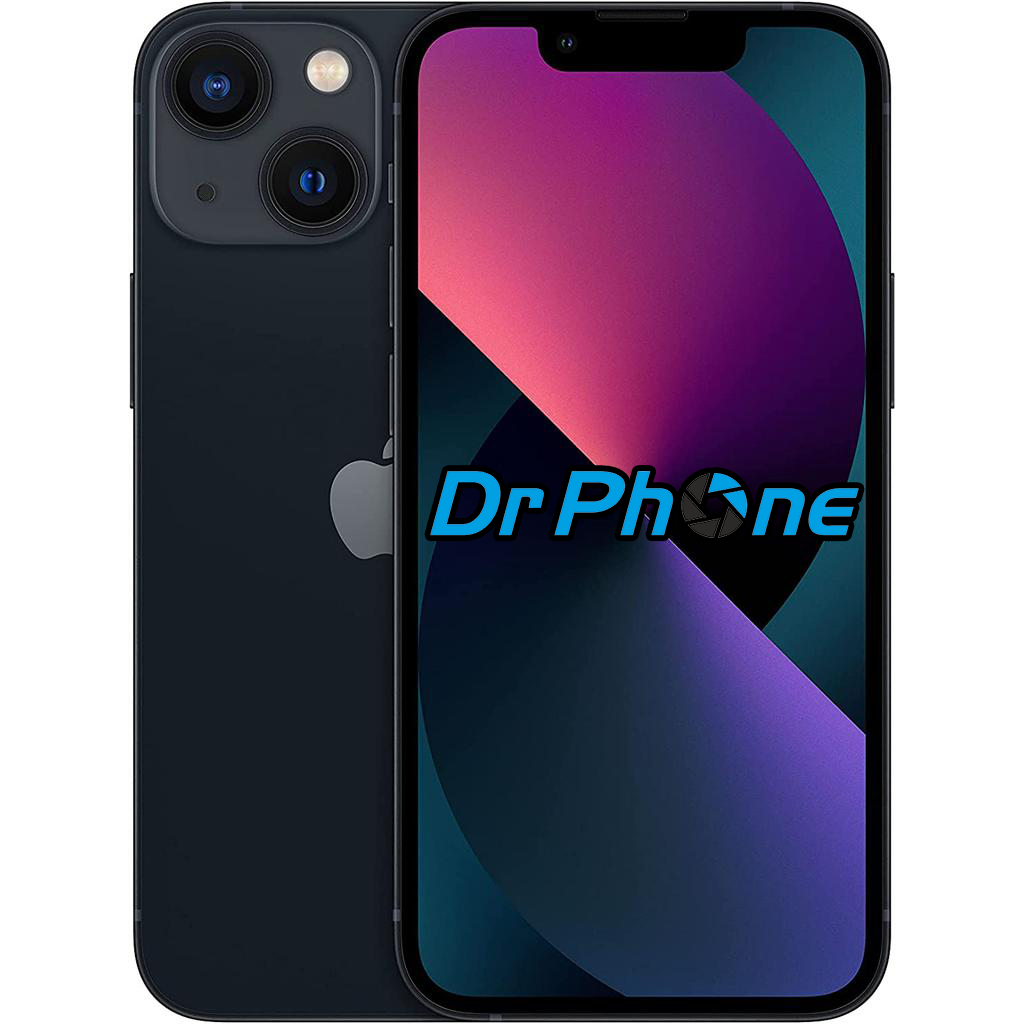 Smartphone preto com ecrã frontal a mostrar o texto Dr Phone e duas câmeras traseiras