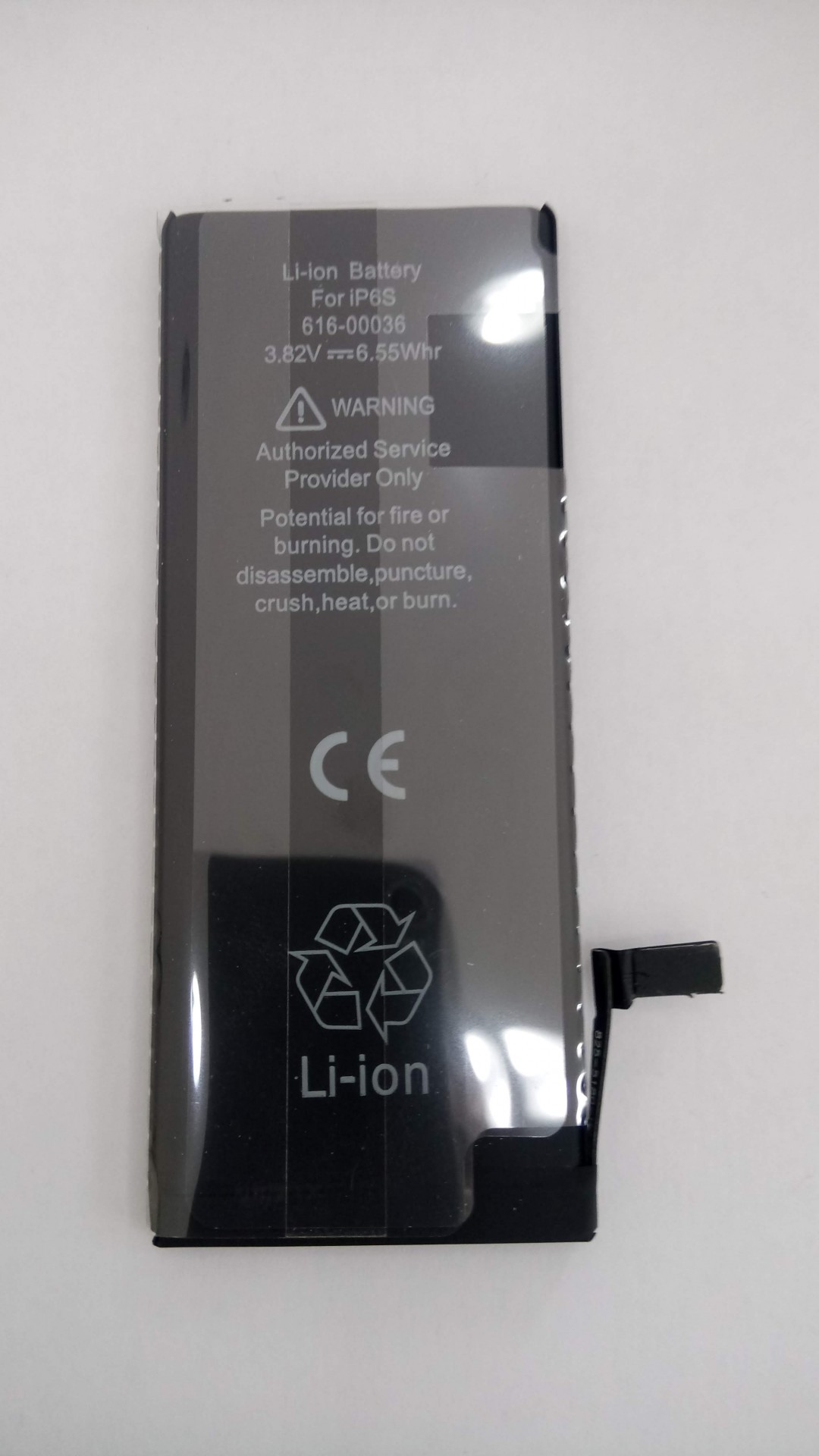 Bateria de íon de lítio para iPhone 6S com texto branco em fundo cinza