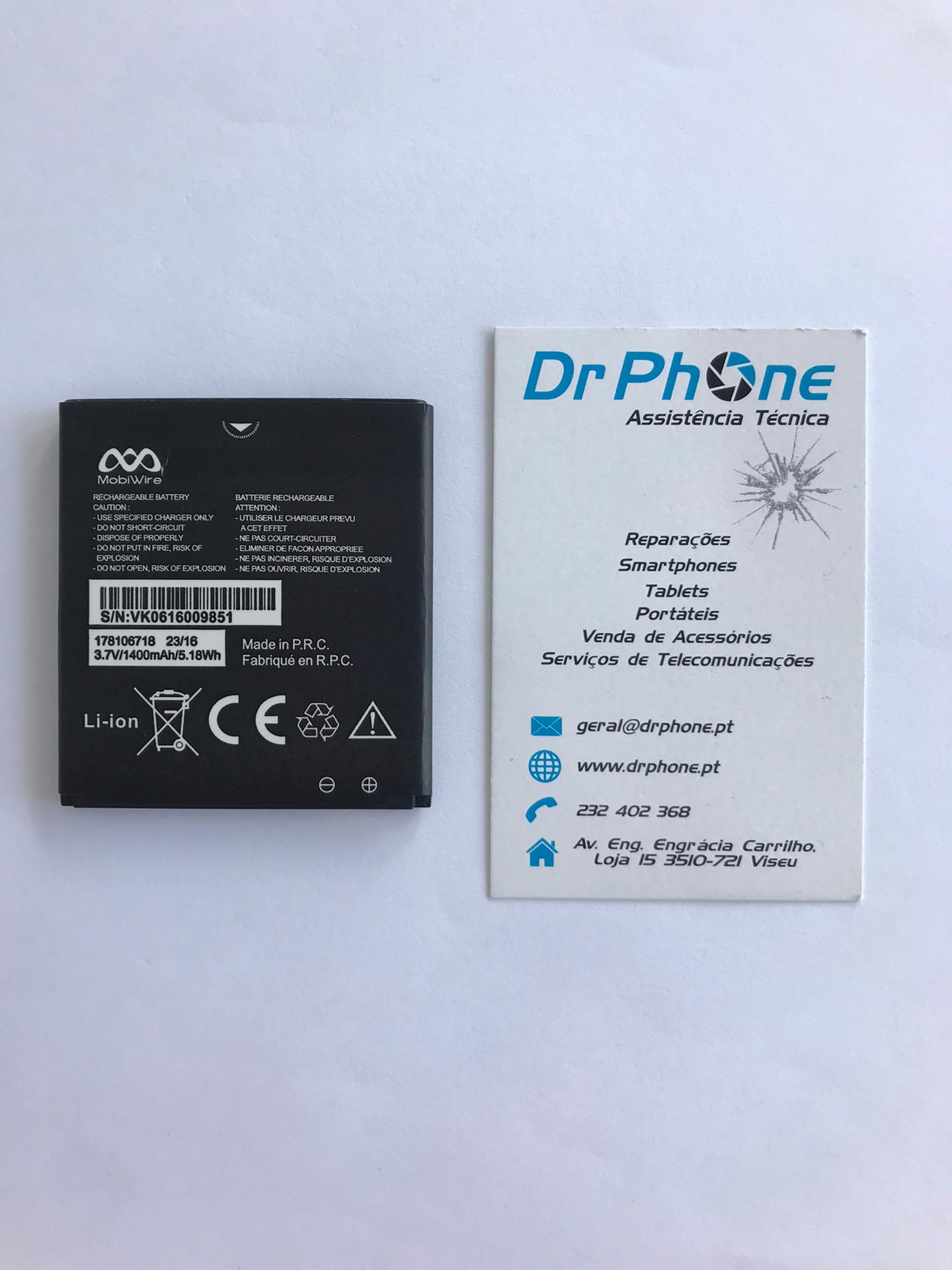 Bateria preta de dispositivo móvel ao lado de cartão de visita DrPhone
