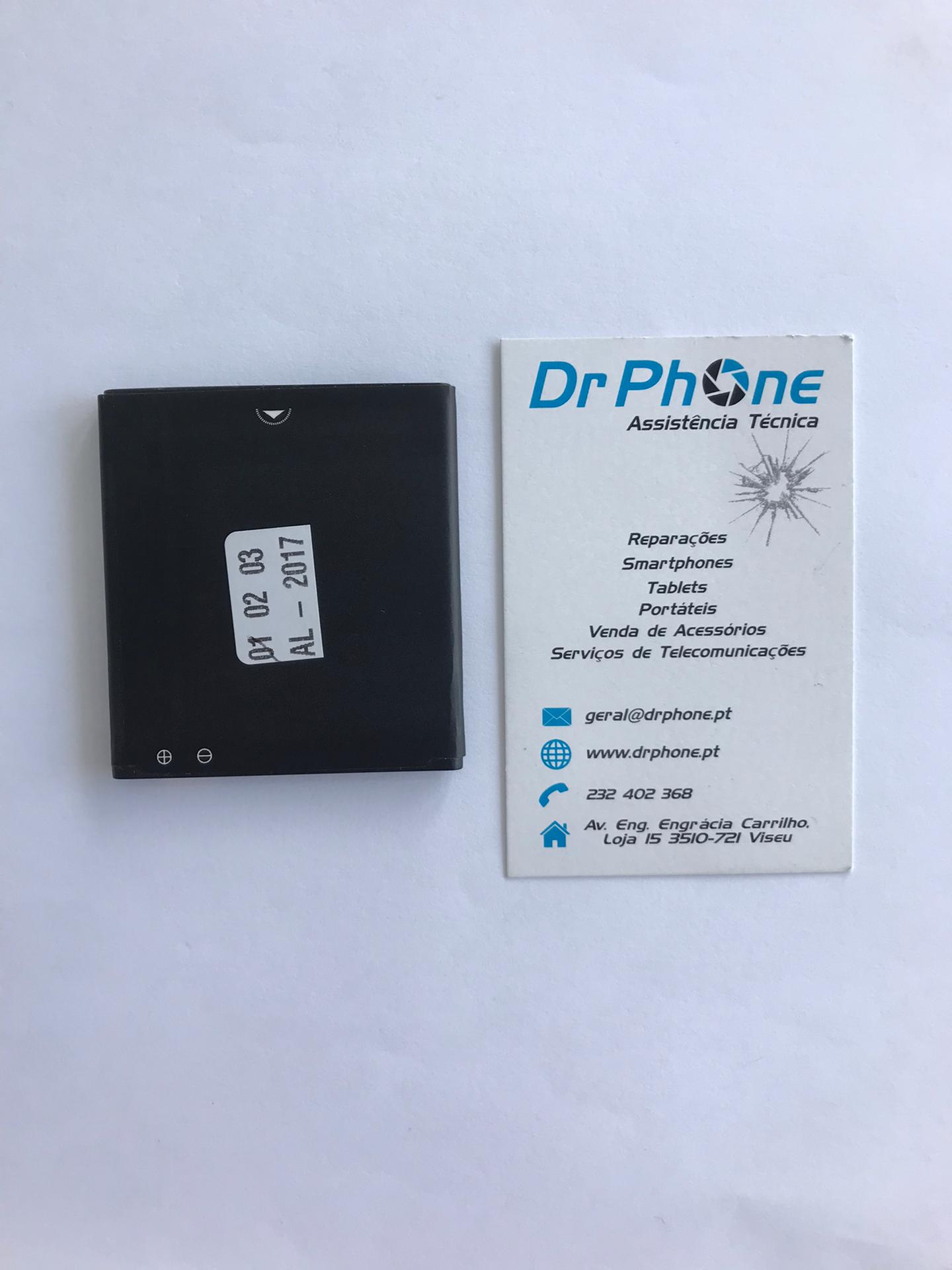 Bateria preta para dispositivo móvel ao lado de cartão de visita da assistência técnica Dr Phone