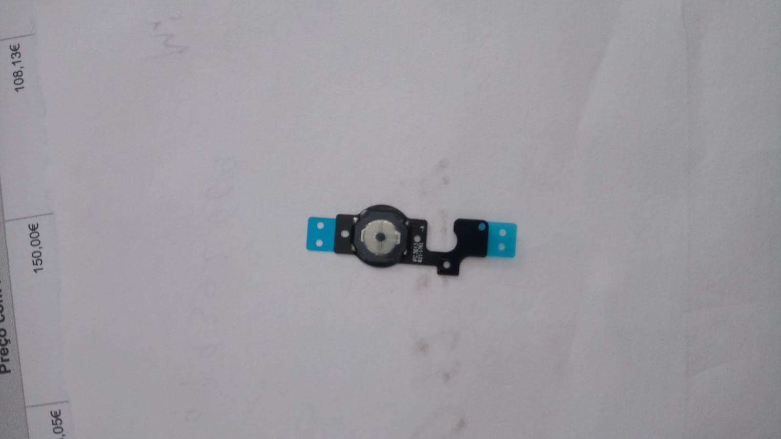 Peça eletrónica preta e azul com componente circular metálico em fundo branco com texto e preços em euros