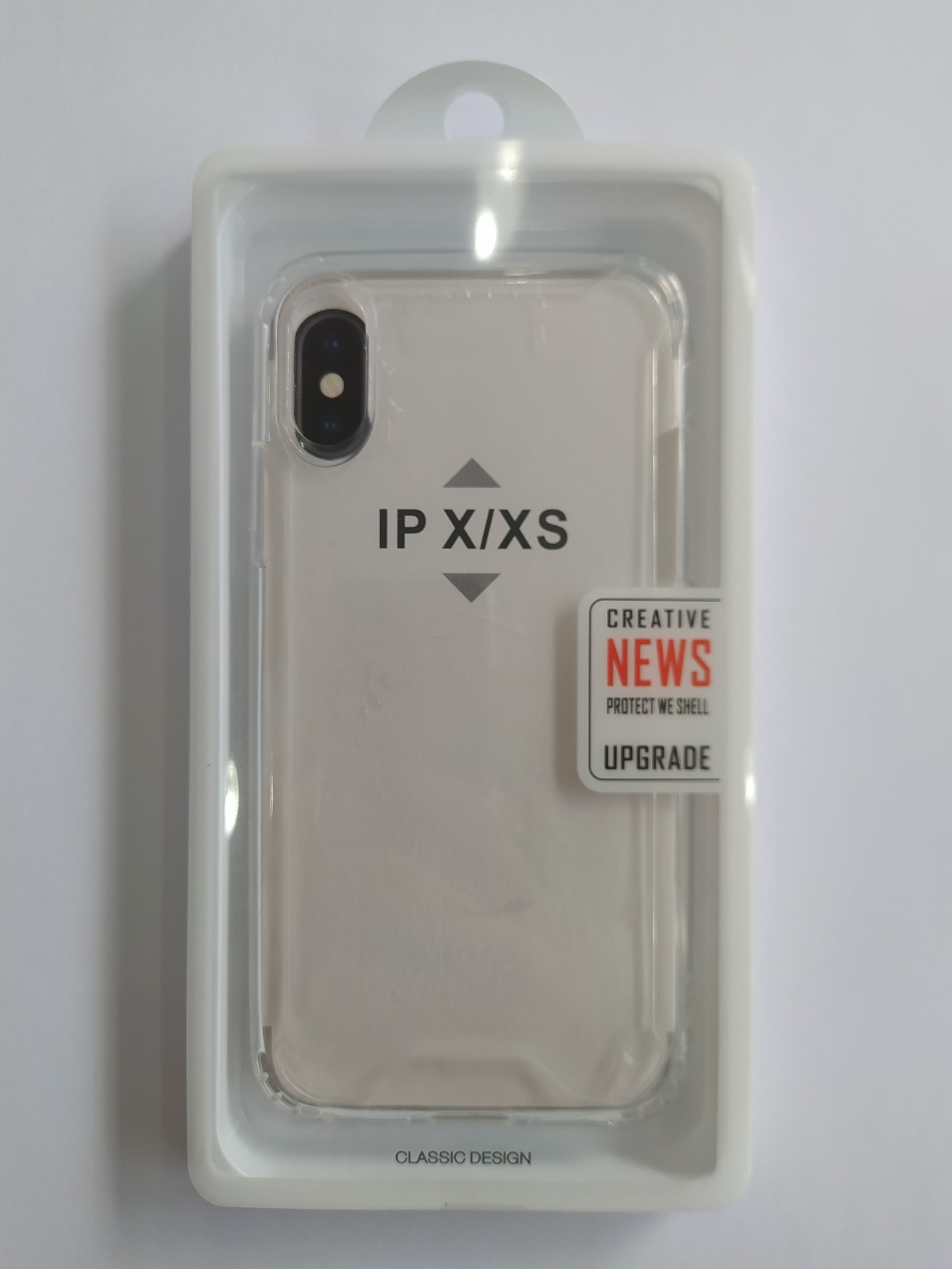 Capa transparente para telemóvel IP X/XS em embalagem branca