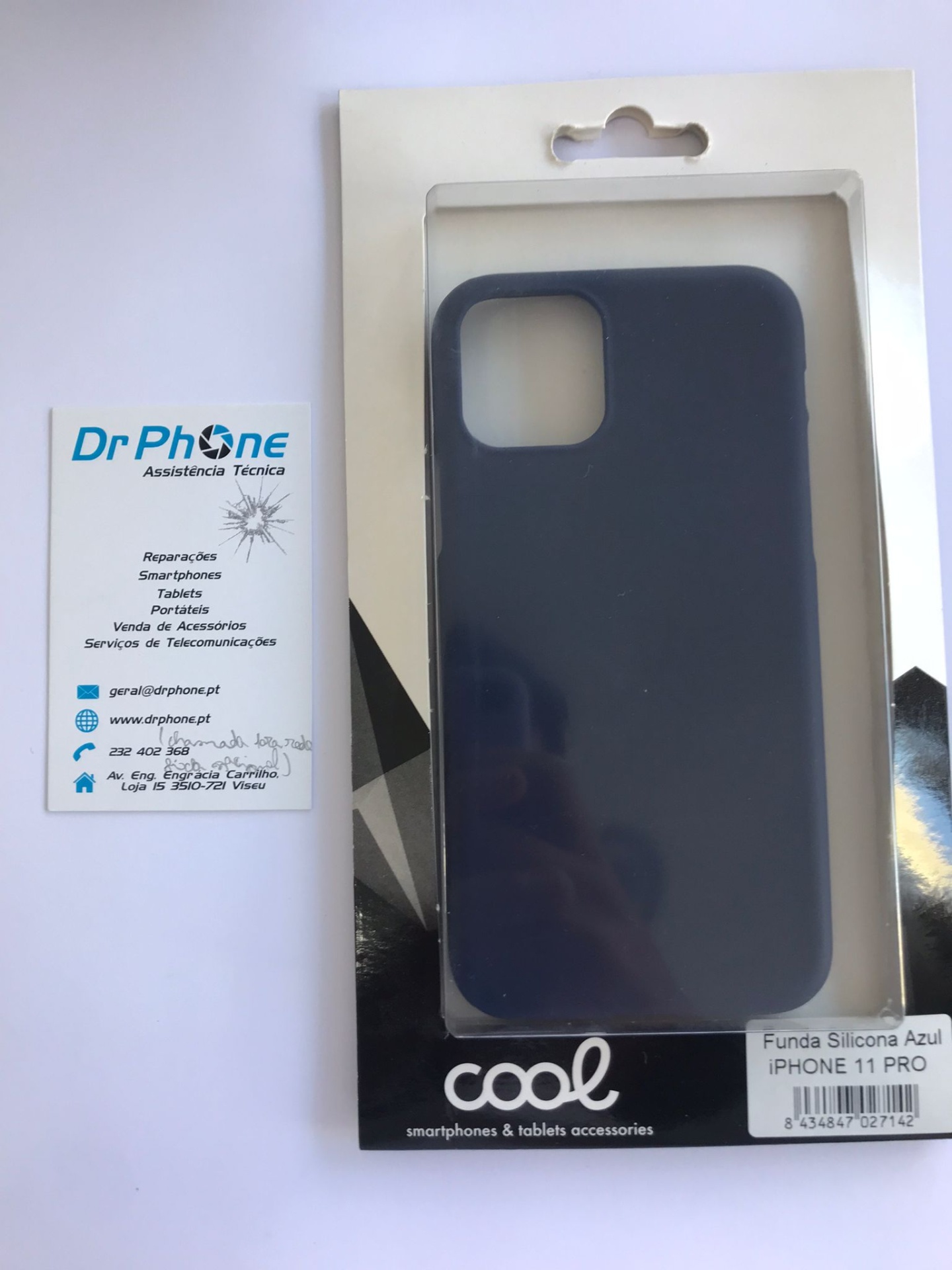 Capa de silicone azul para iPhone 11 Pro embalado e cartão de visita da empresa Dr Phone