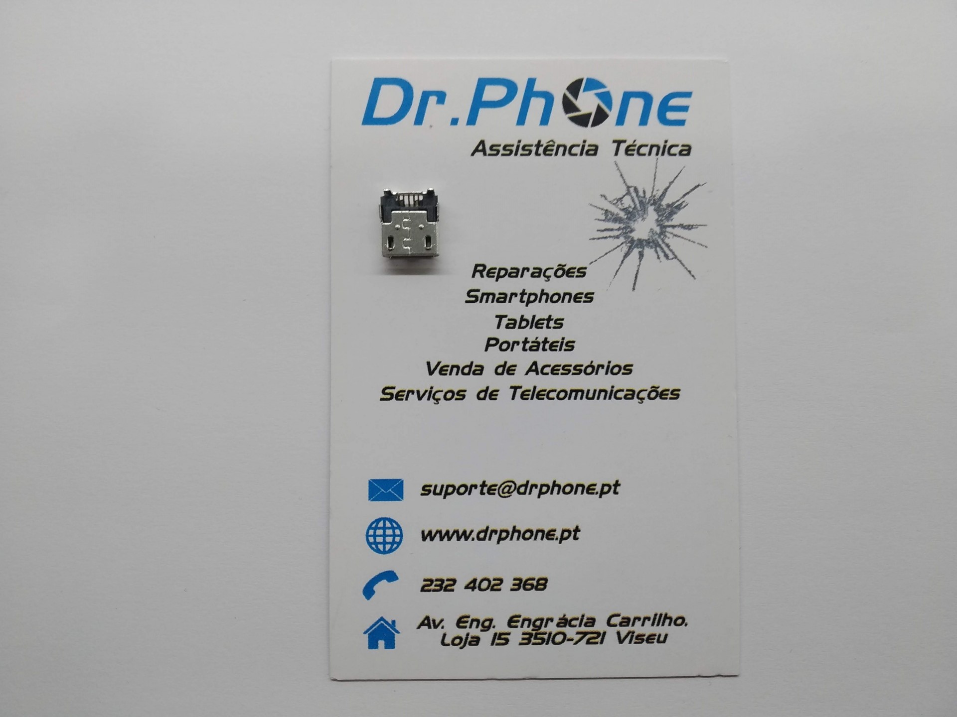 Cartão de visita Dr. Phone com texto informativo e conector micro USB preso