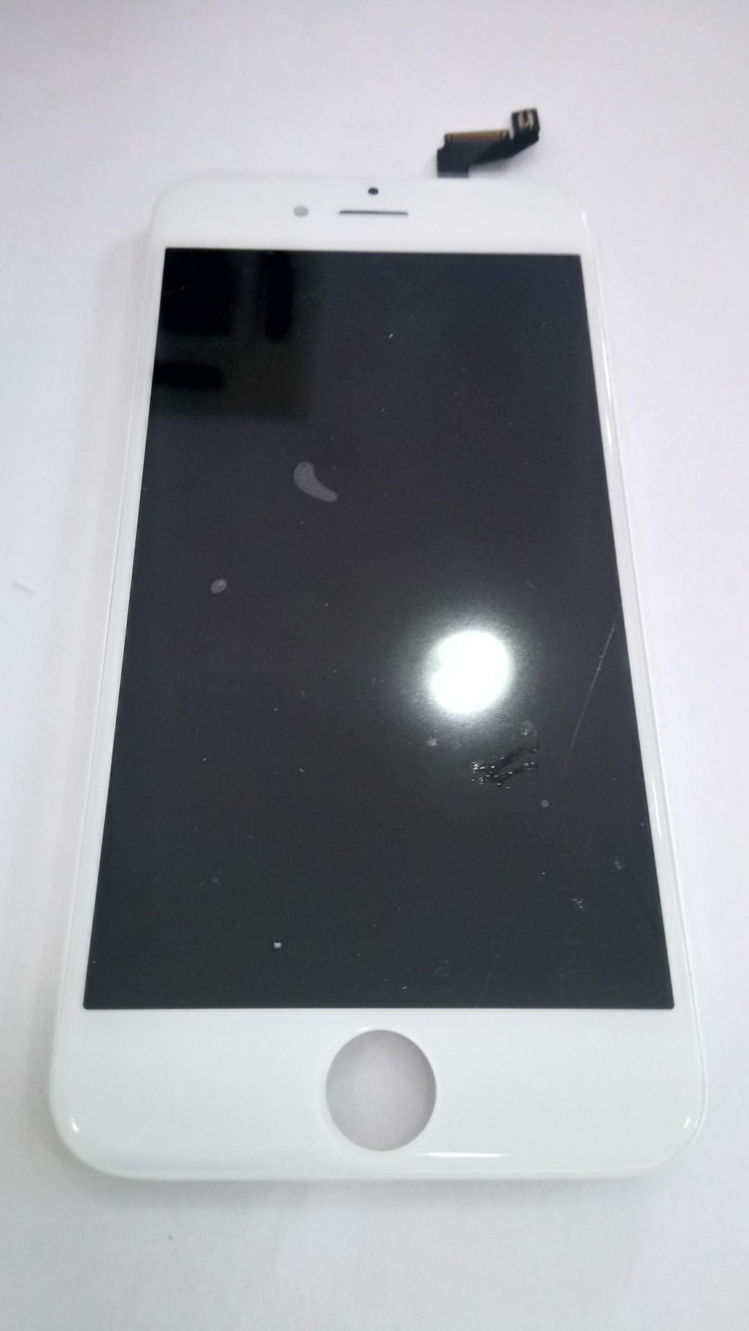 Ecrã frontal branco de smartphone com botão home e conector flex