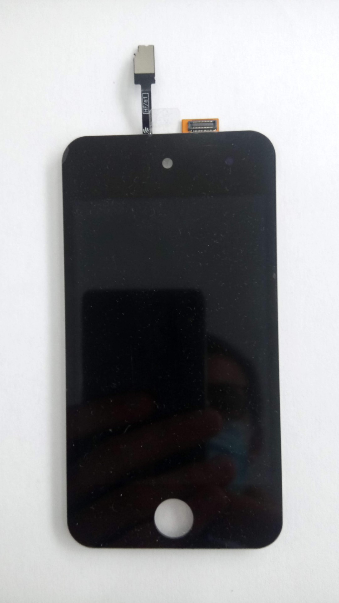 Ecrã táctil preto para smartphone com botão circular inferior e cabo flexível