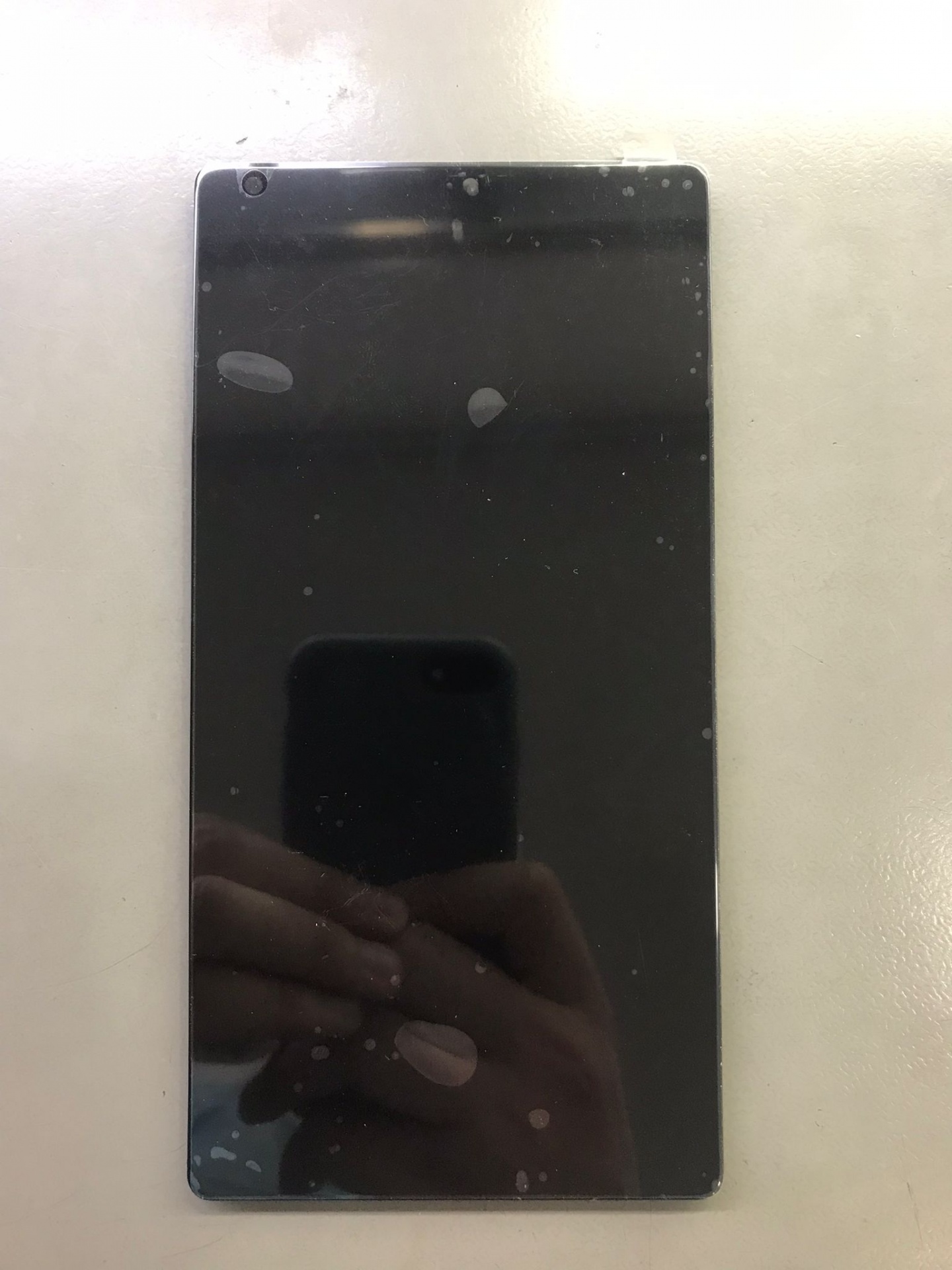 Tablet preto com ecrã refletor e manchas