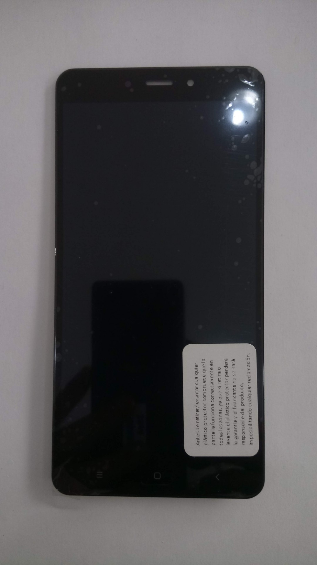 Smartphone preto com ecrã desligado e adesivo branco na frente