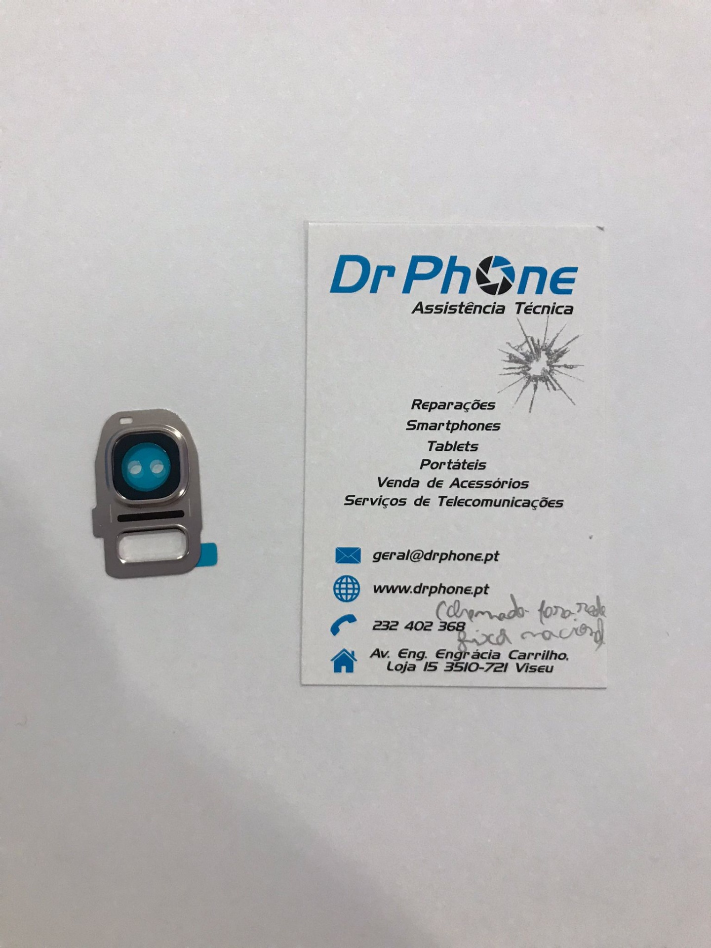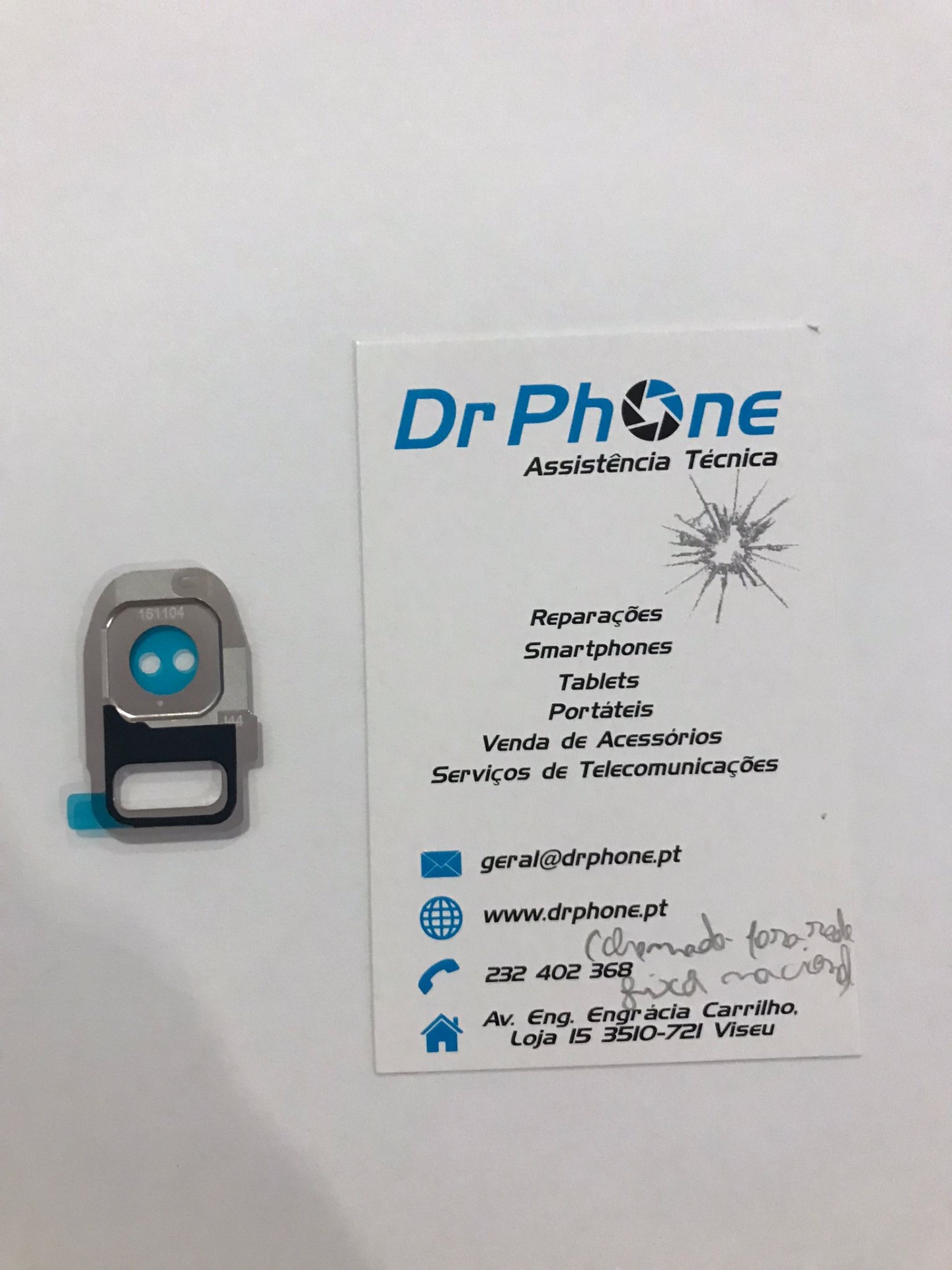 Lente de câmara para smartphone e cartão de visita da Dr Phone