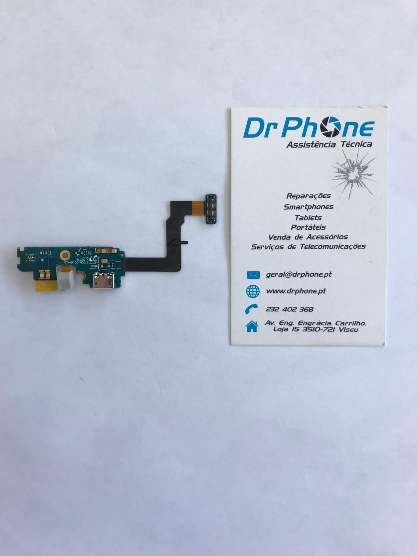 Placa eletrónica com conector flexível e cartão de visita da empresa Dr Phone