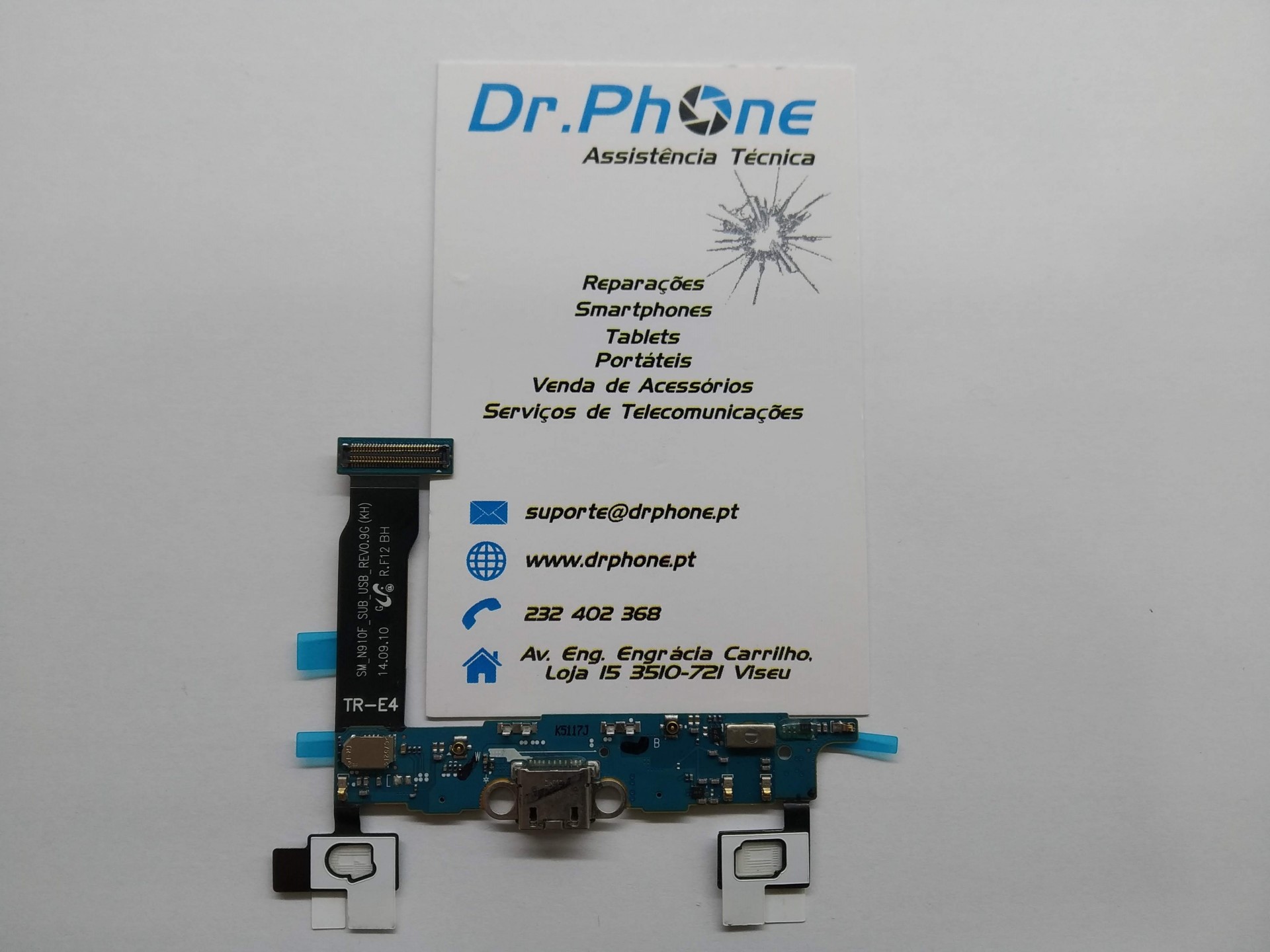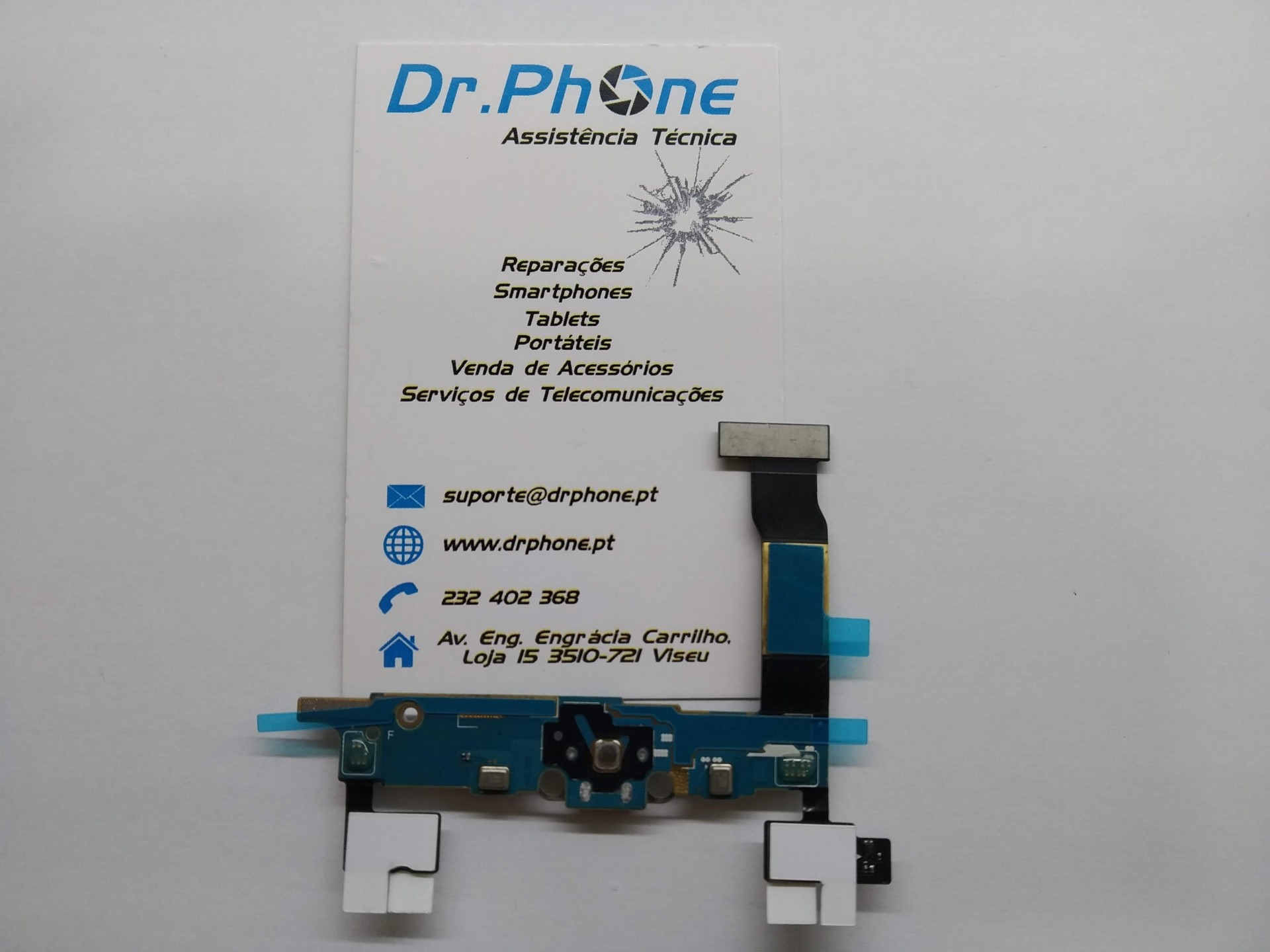 Cartão Dr.Phone Assistência Técnica e placa eletrónica com cabo flexível