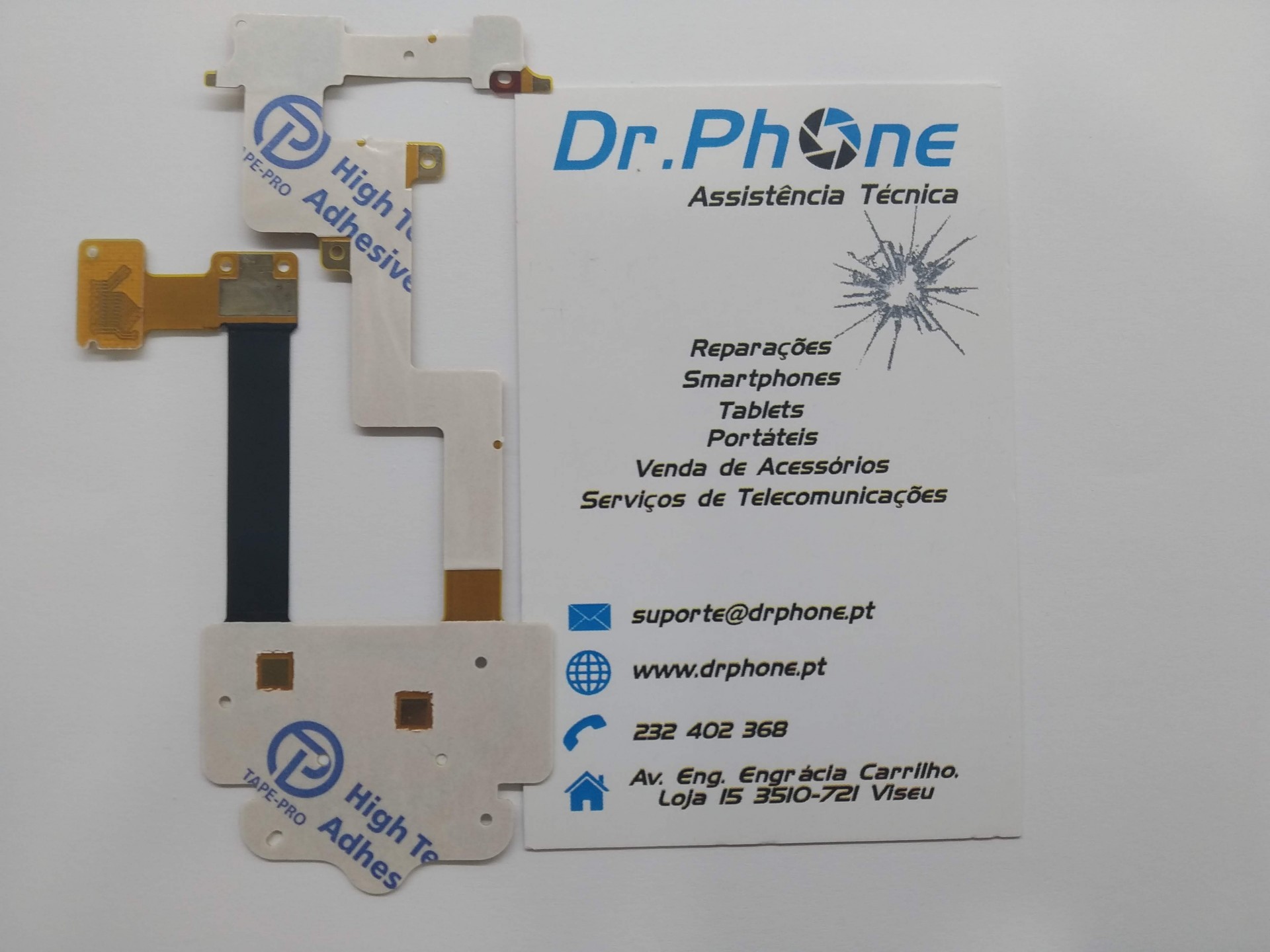 Peças eletrónicas flexíveis ao lado de cartão de visita da Dr.Phone Assistência Técnica