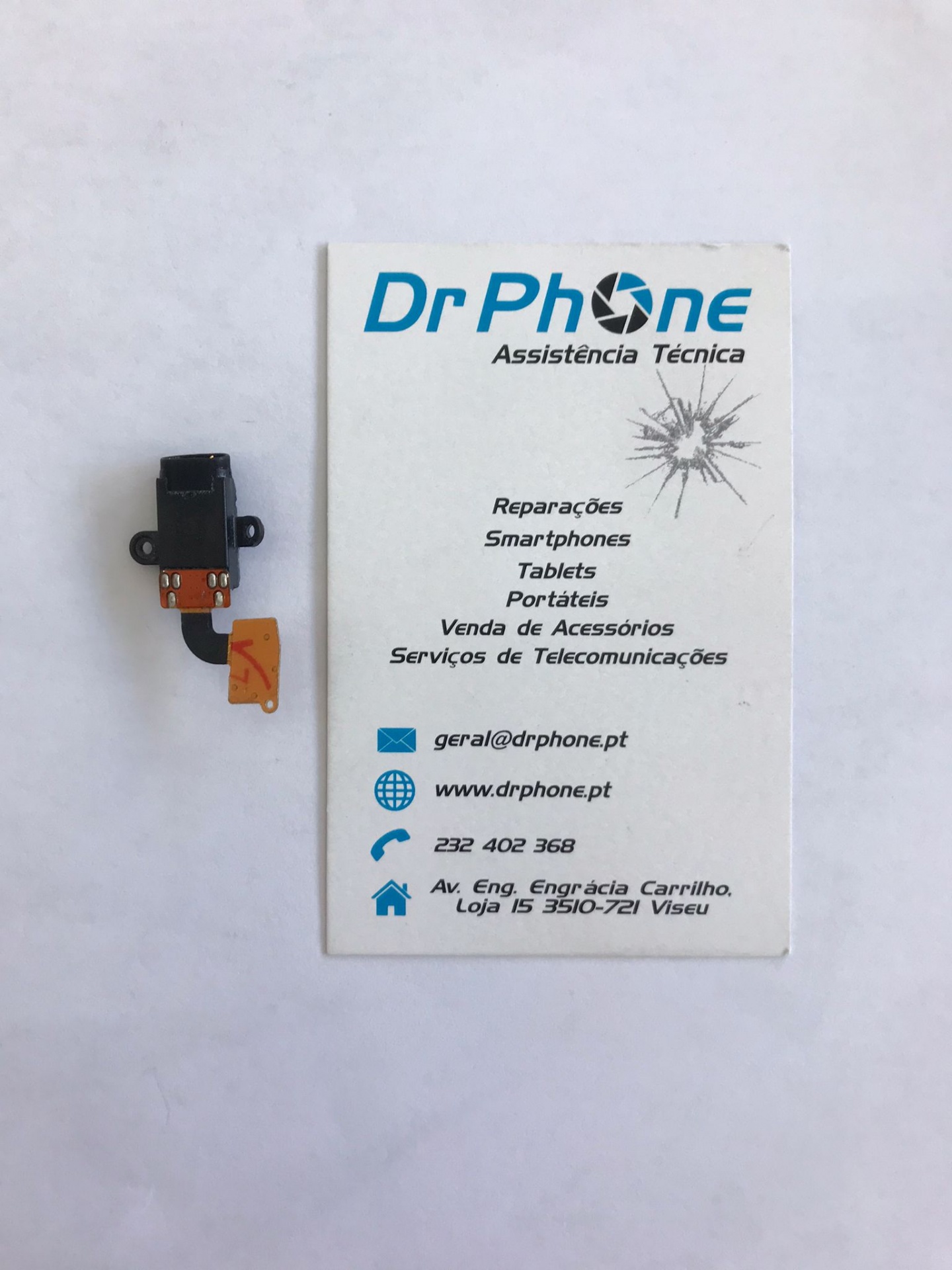 conector de auriculares preto e cartão de visitas da Dr Phone