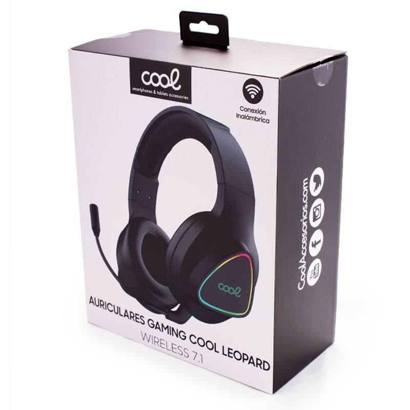 Embalagem de auriculares gaming wireless 7.1 com microfone da marca Cool modelo Leopard