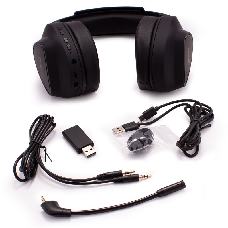 Auricular sem fios preto com microfone flexível e iluminação LED colorida, receptor USB