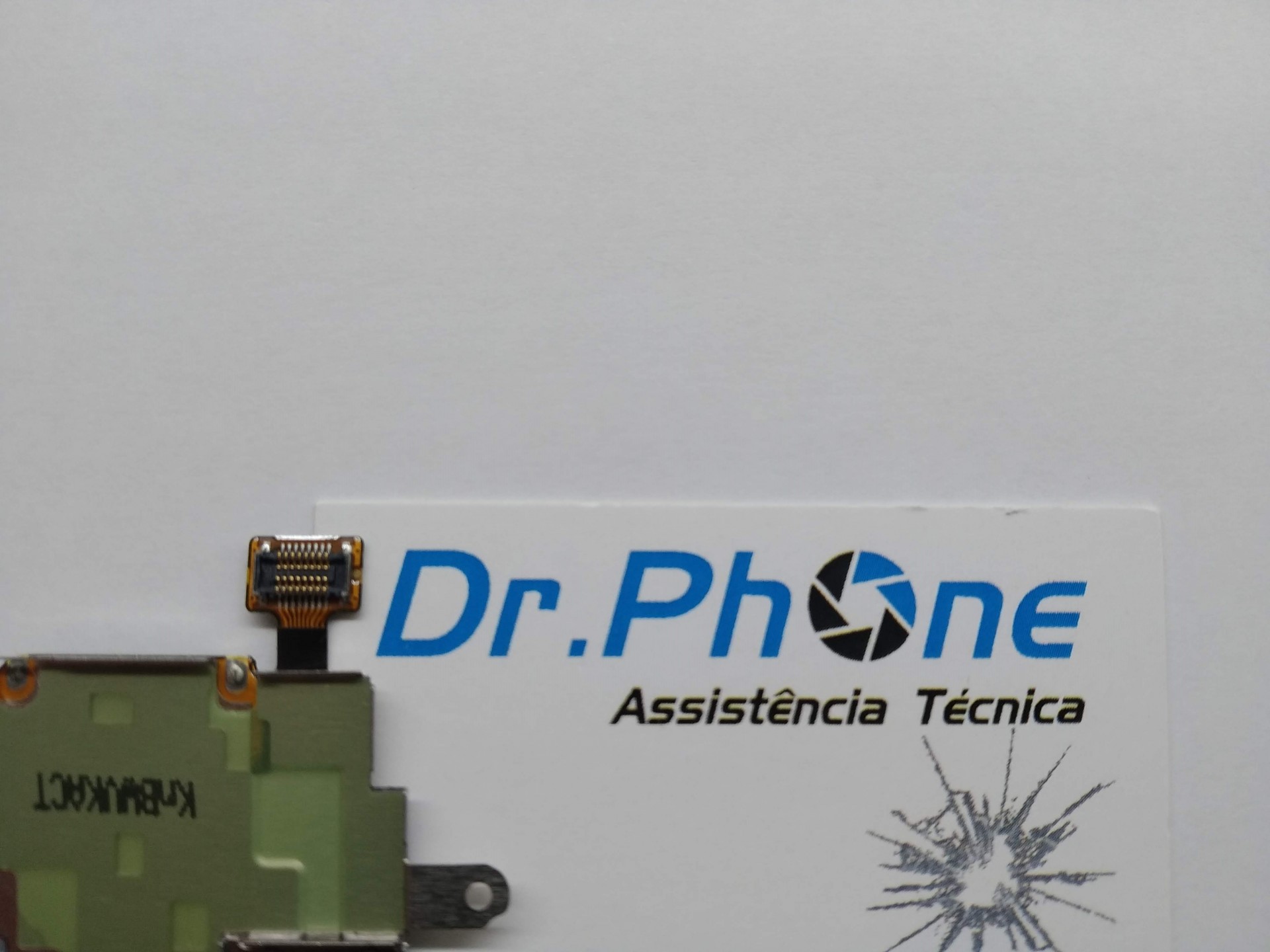 Peça eletrónica com slot SIM ao lado de cartão de visita da Dr.Phone Assistência Técnica