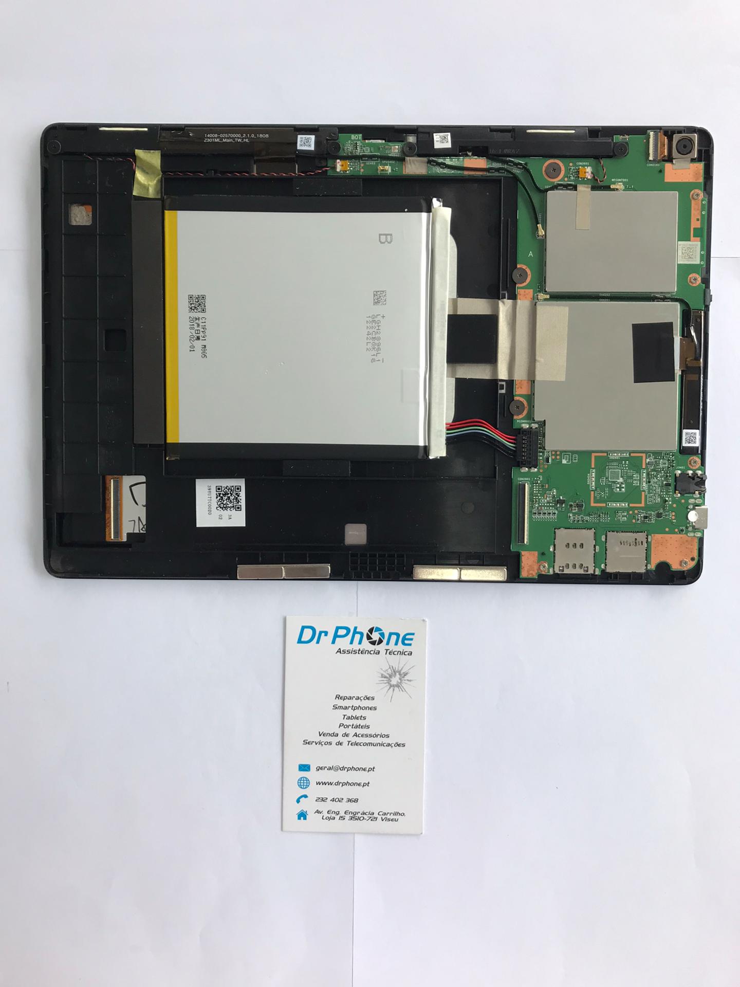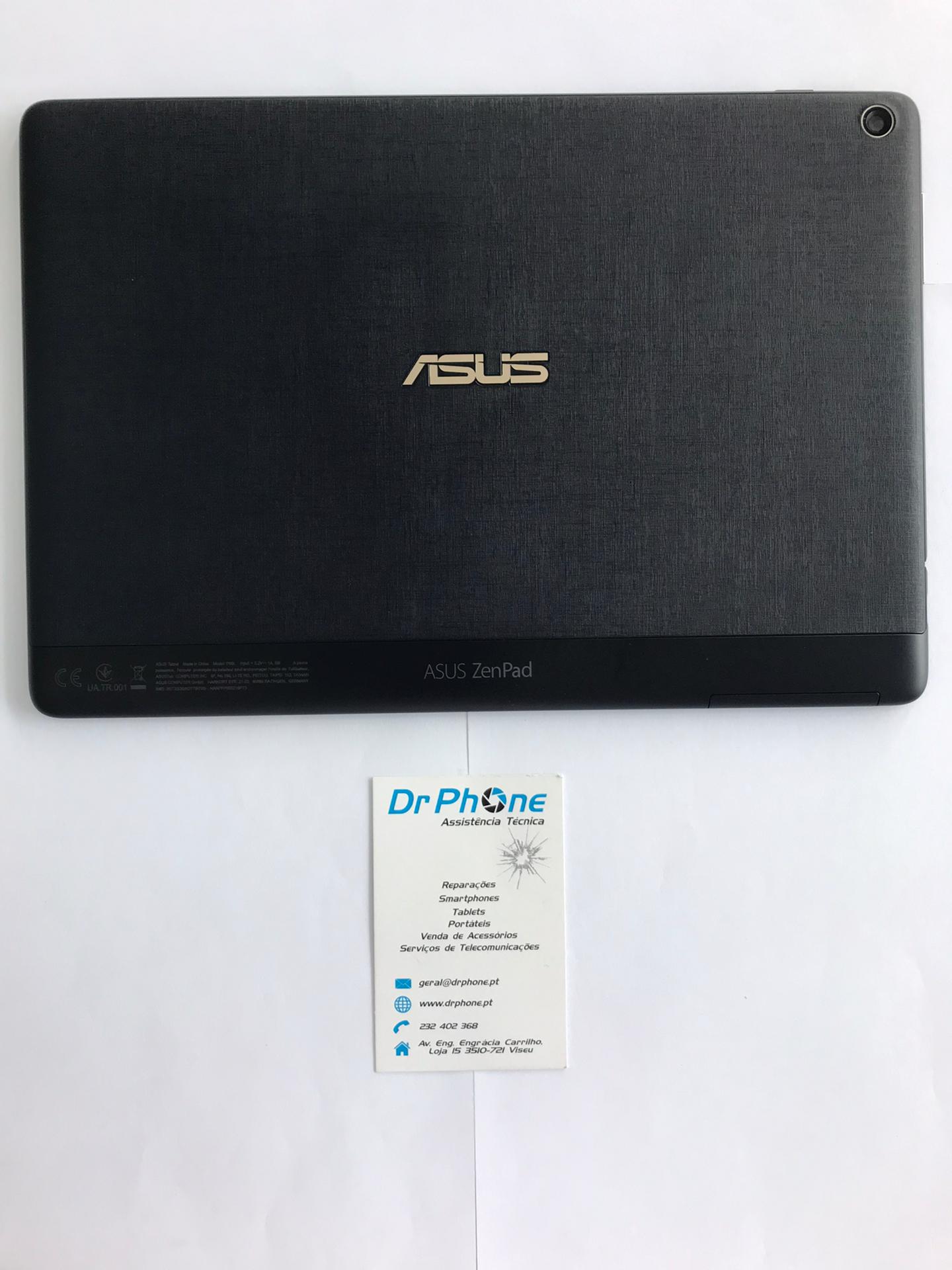 Tablet ASUS ZenPad preto com textura no verso e cartão Dr Phone