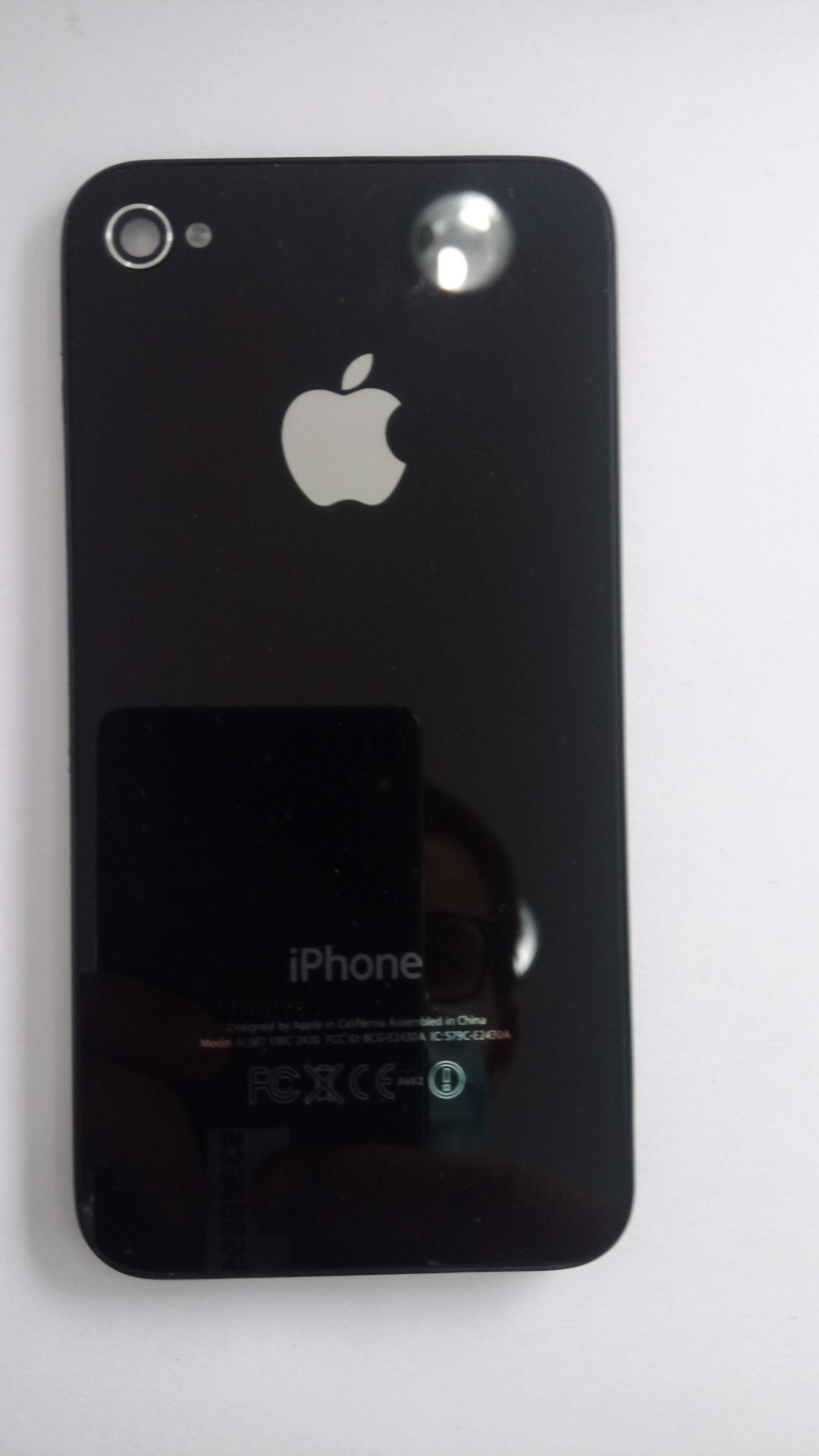iPhone preto com logotipo da Apple e textos na parte traseira