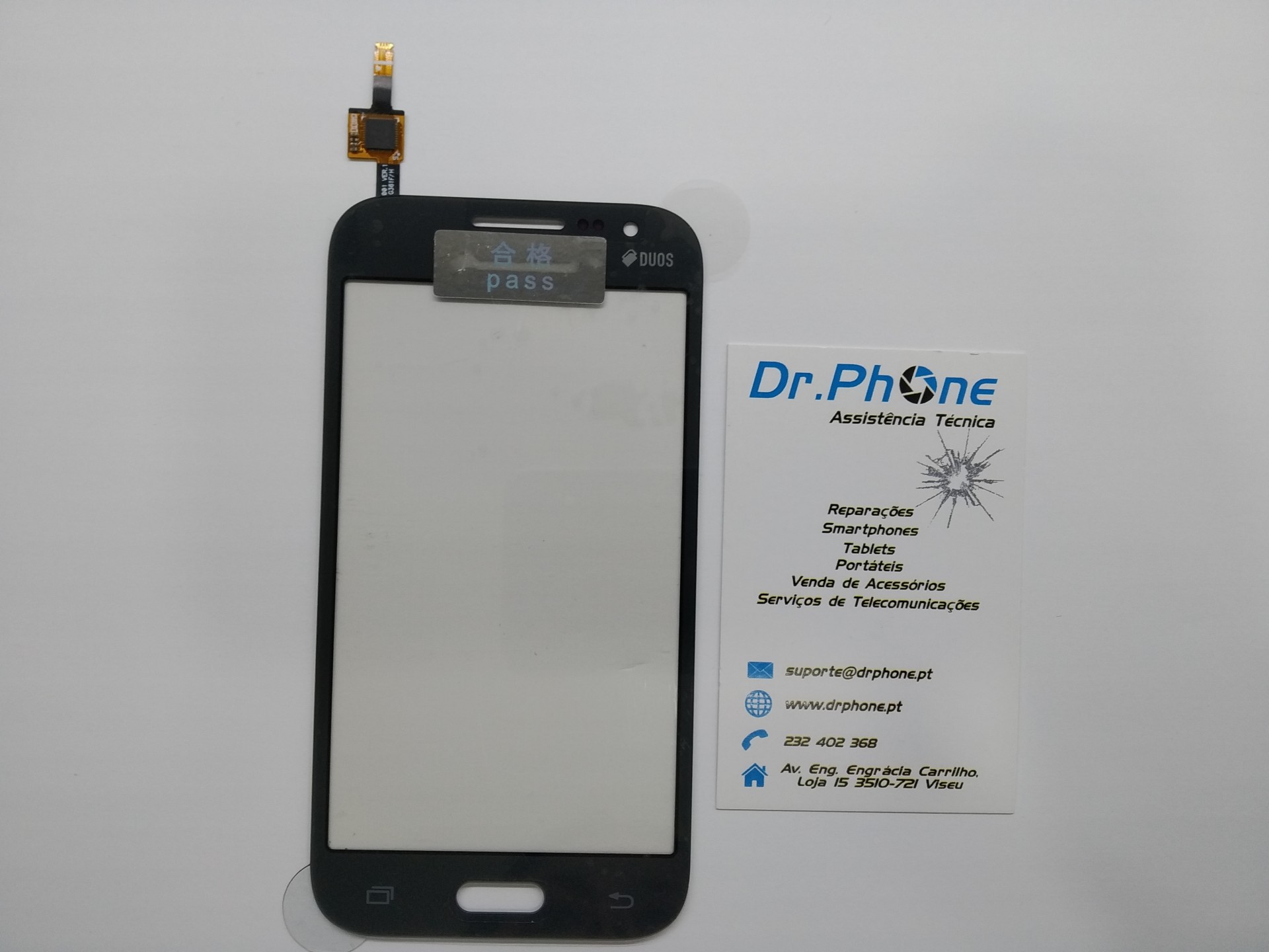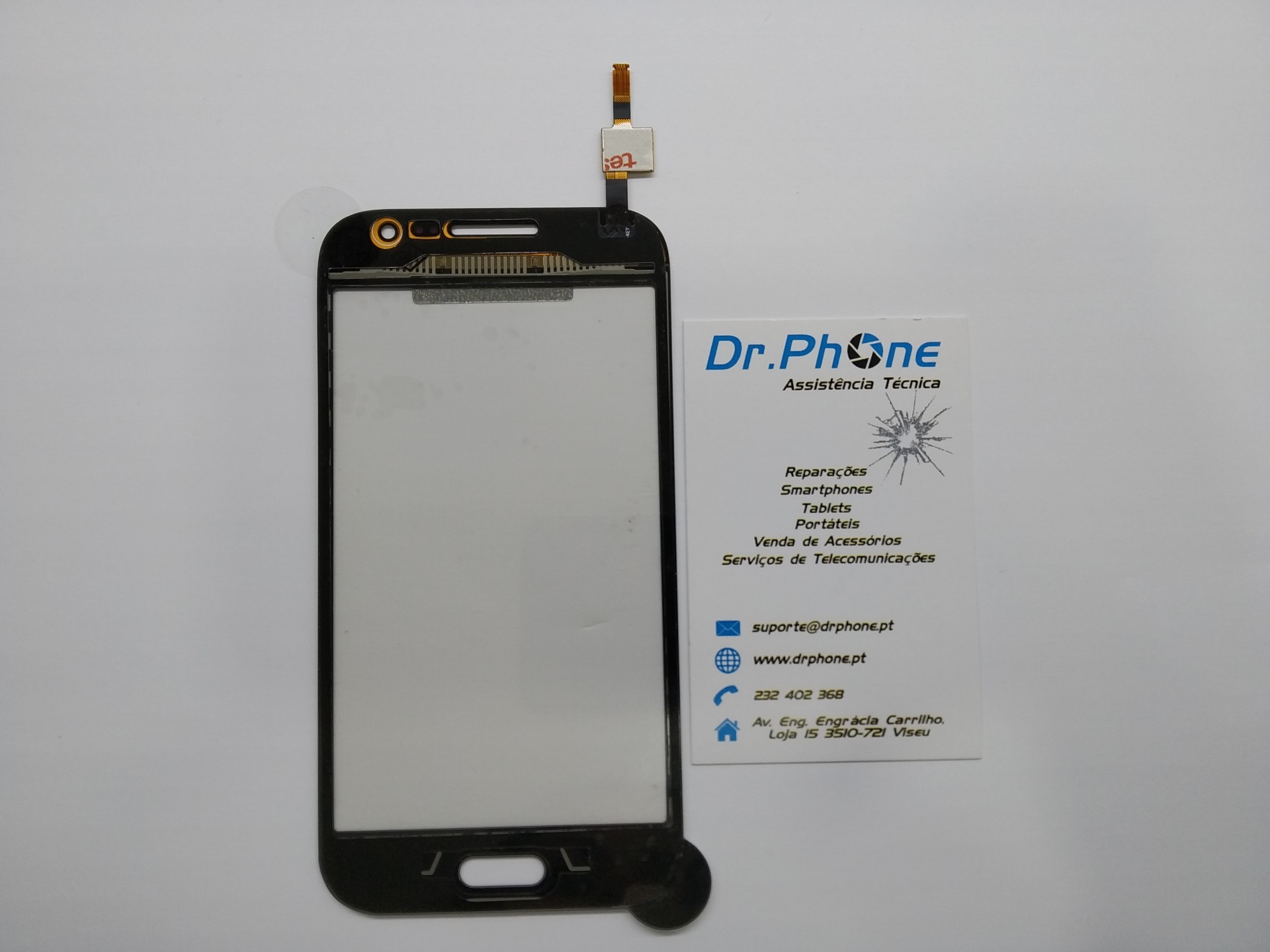 Ecrã tátil para smartphone preto com cartão de visita da Dr.Phone