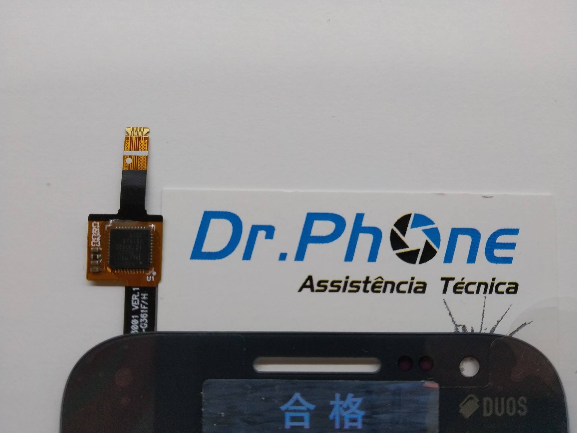 Módulo flexível eletrônico sobre cartão Dr.Phone e ecrã de telemóvel