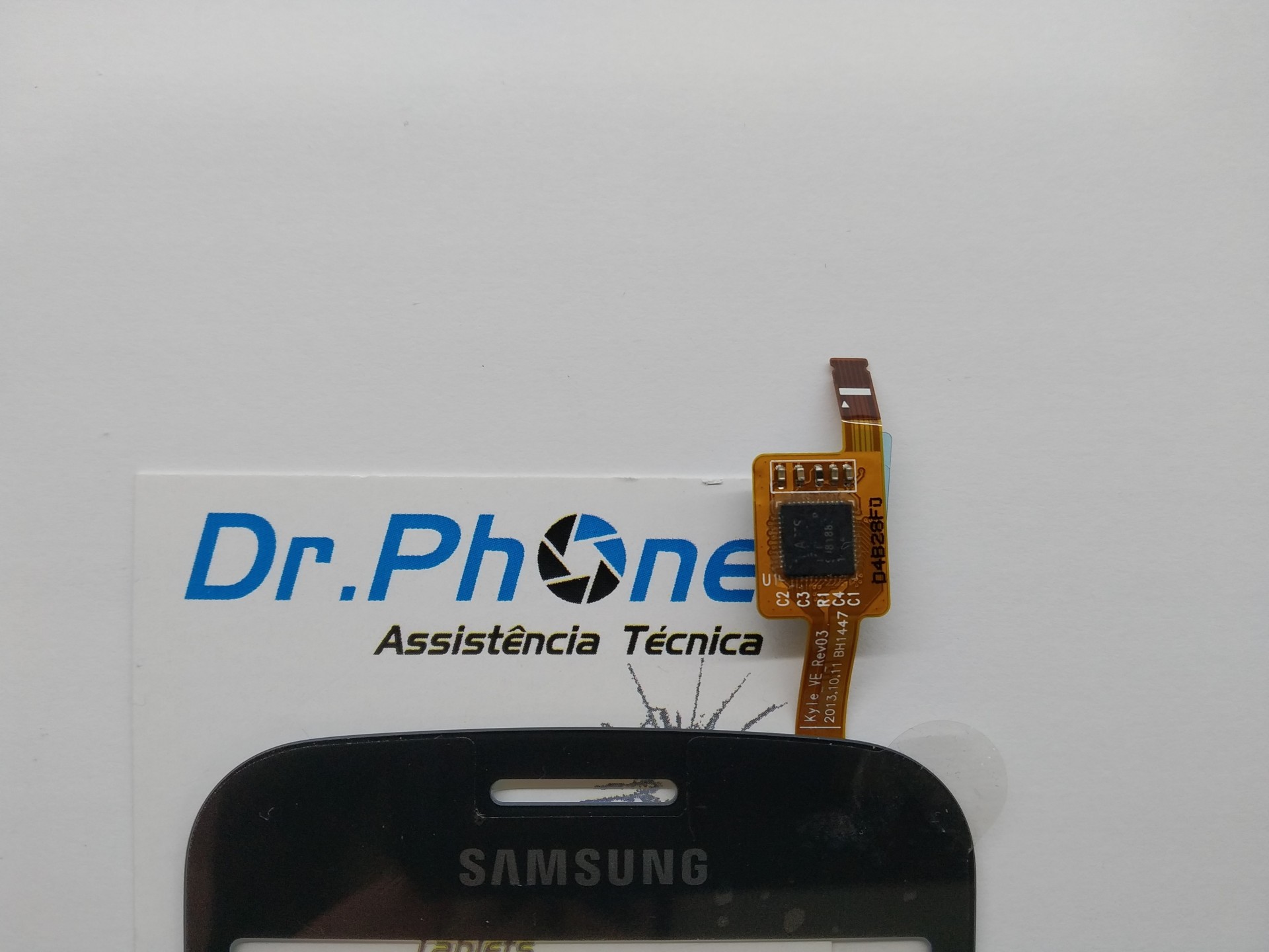 Ecrã tátil preto Samsung com componente flex e cartão de visita DrPhone