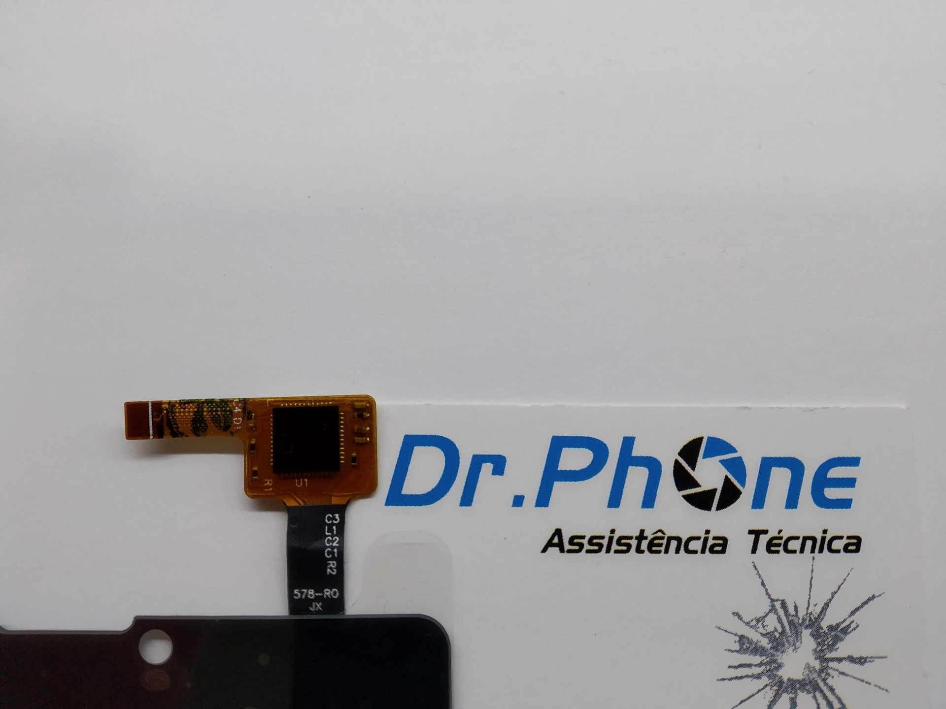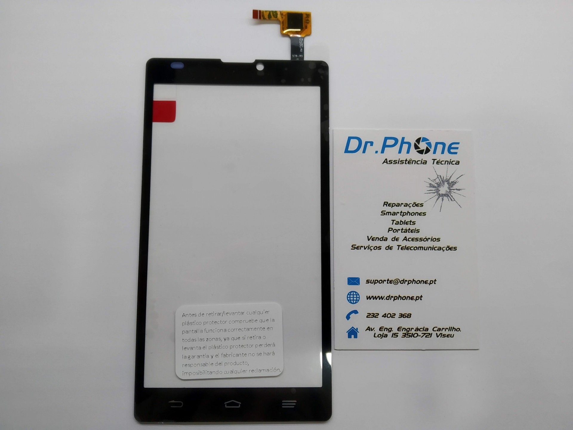 Ecrã tátil para smartphone com moldura preta e cartão de visita da Dr.Phone
